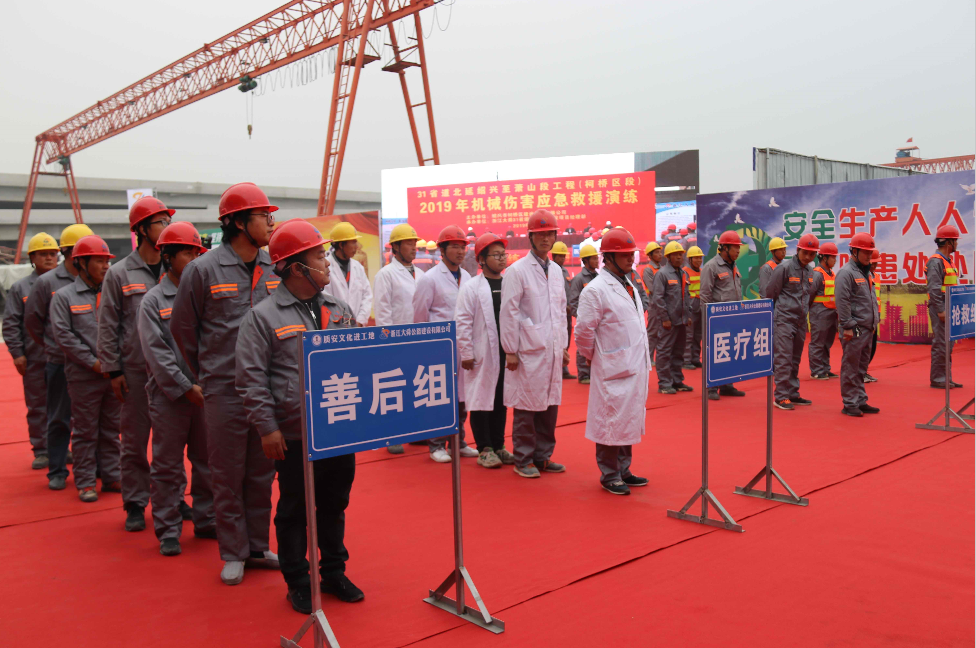 12月17日下午,交通工程机械伤害应急救援演练活动在31省道北延绍兴至萧山段工程(柯桥段)第2标预制场顺利举行,区交通运输局、区交通质监站、建设集团相关部室等代表参加观摩指导。此次演练旨在进一步提高参建人员安全防范意识、应急处置能力以及团队协作凝聚力,检验应急预案的实用性和可操作性,全面提升应对突发安全事故的现场处置能力。