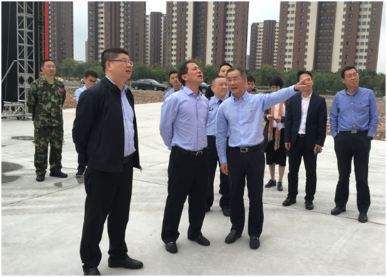 日下午,柯桥区区委书记沈志江带领区委相关领导和负责人来到绍兴国际会展中心项目现场,视察即将在这里举行的全省扩大有效投资重大项目集中开工仪式的布置工作。区建设集团董事长滕建平同志就场地建设情况和布展中的相关内容向沈书记进行了详细的汇报介绍。