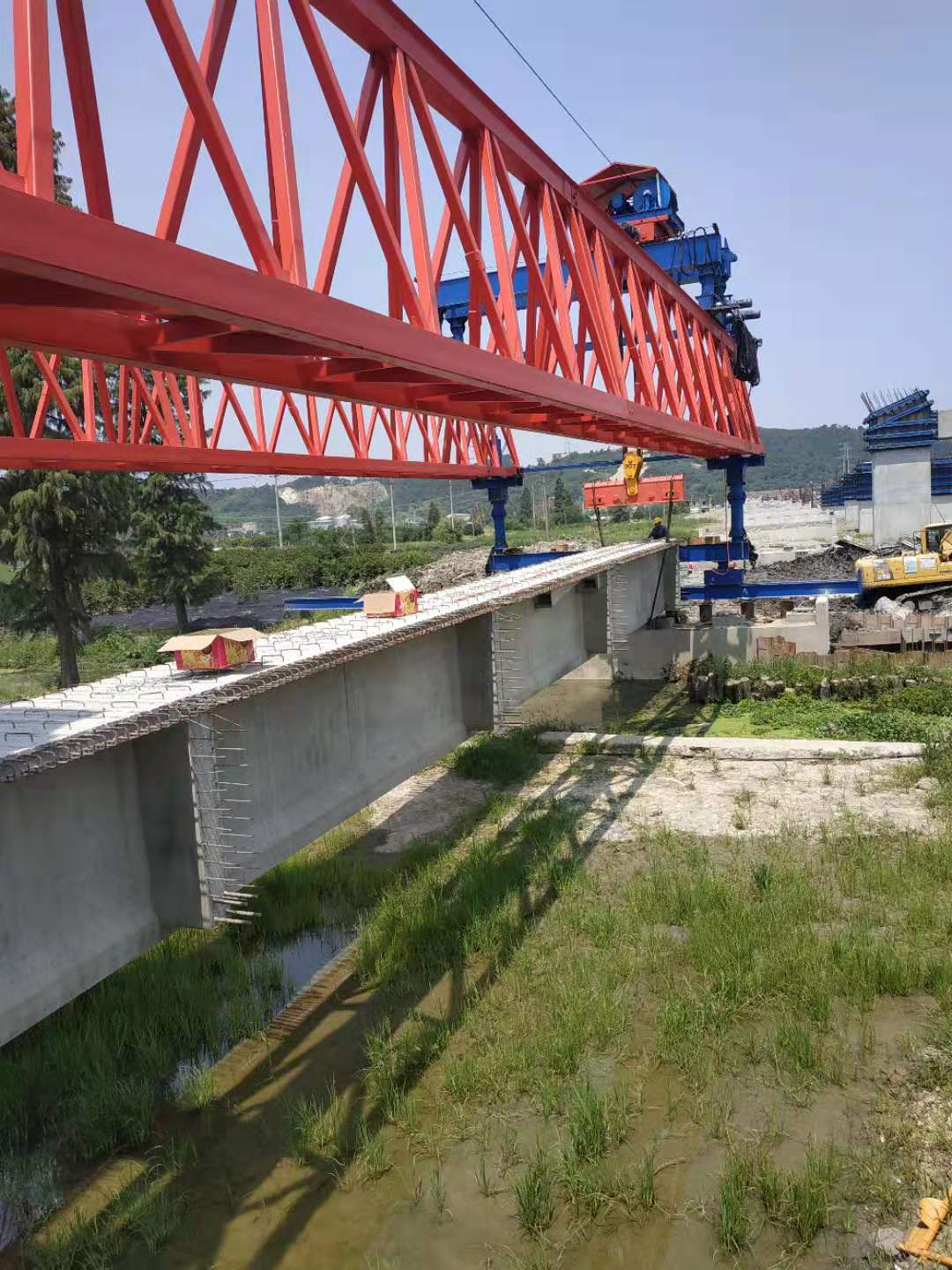 镜水路南延工程完成首片T梁试吊架设