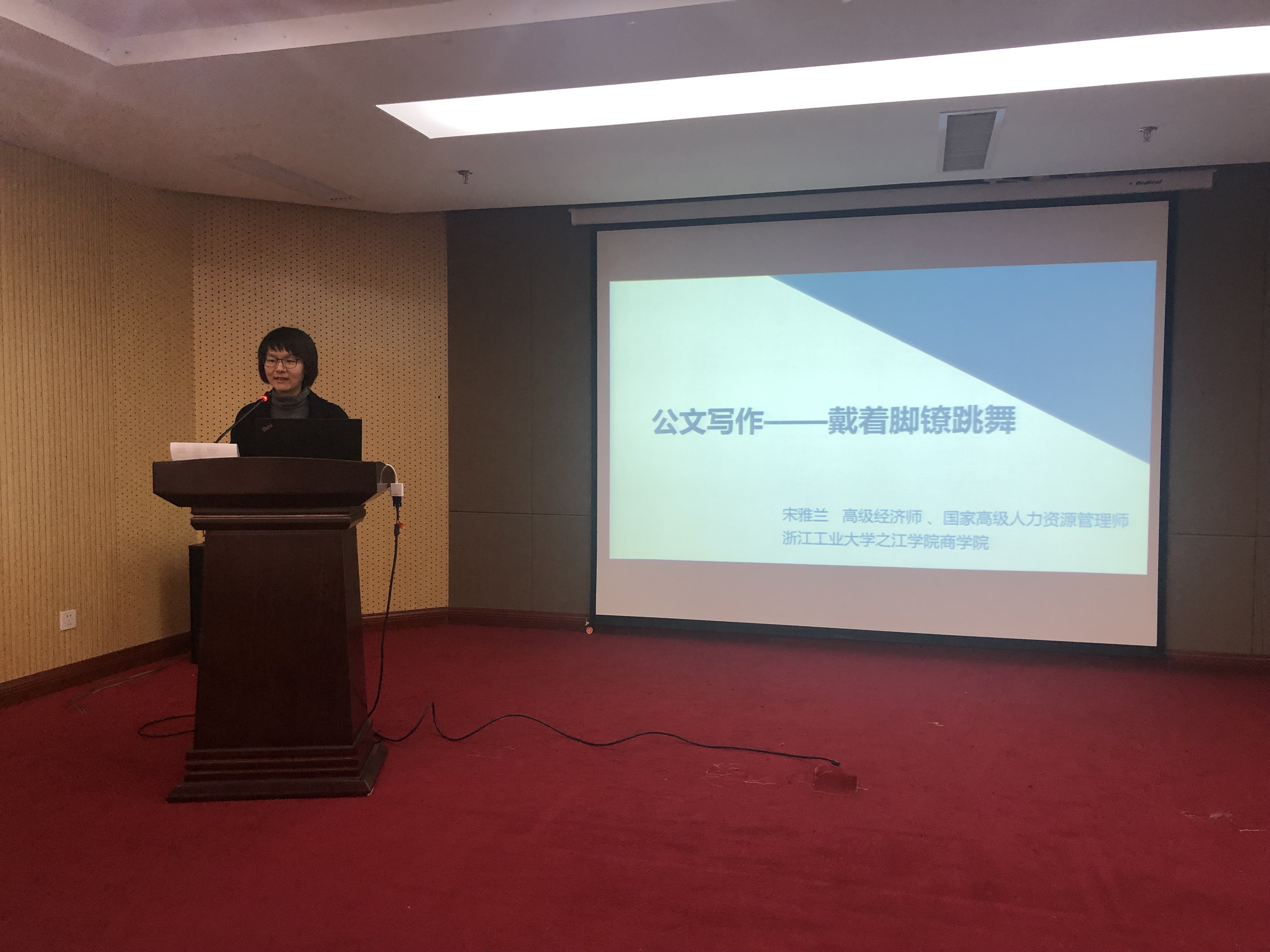 本次培训,邀请浙江工业大学之江学院宋雅兰老师进行授课。培训课上,宋雅兰老师向大家深入浅出的讲述了公文写作的基础知识,详细阐述了公文的规范格式,着重为大家讲述了决定、通知、公告、报告、请示等公文的写作方法,并逐个举例说明,生动形象。通过培训,大家收获颇丰,对公文写作有了全面认识和深刻理解,希望能把学到的知识用到工作中,增强公文规范意识,不断提高公文写作水平,以更好地完成本职工作。