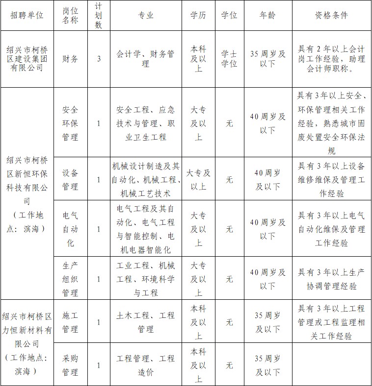 绍兴市柯桥区建设集团有限公司派遣制人员招聘公告