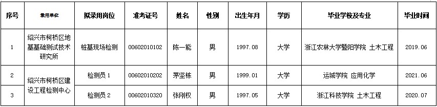 绍兴市柯桥区建设集团有限公司下属企业拟录用人员公示