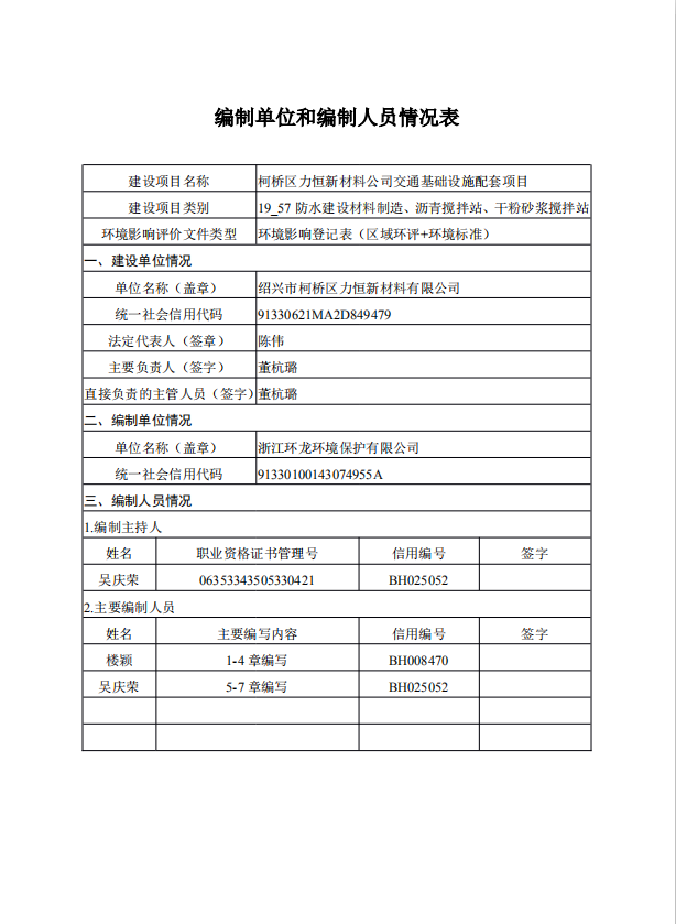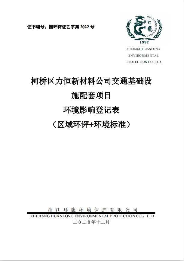 柯桥区力恒新材料公司交通基础设施配套项目环境影响登记表(区域环评+环境标准)