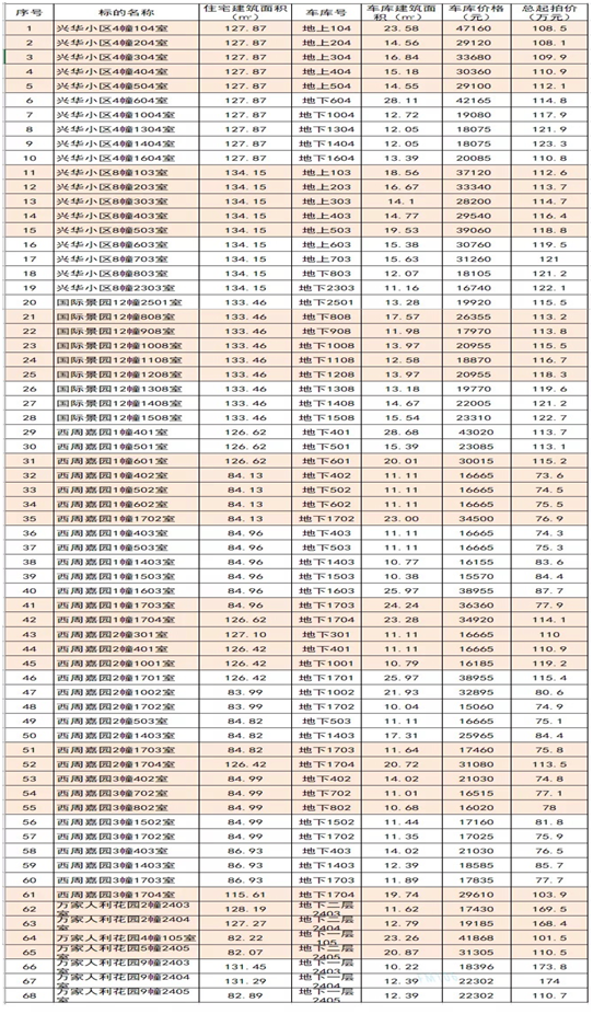 兴华小区、国际景园、西周嘉园、万家人利共计68套住宅公开拍卖