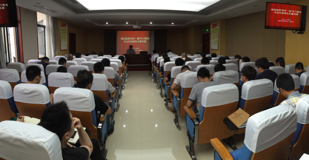 三、“两学一做”专题党课。由集团党委书记、董事长单崇军同志为全体党员干部上了一堂《深入推进“两学一做”学习教育常态化制度化---送给年轻党员干部的八句话》的专题党课。