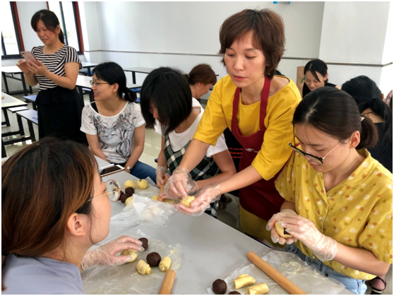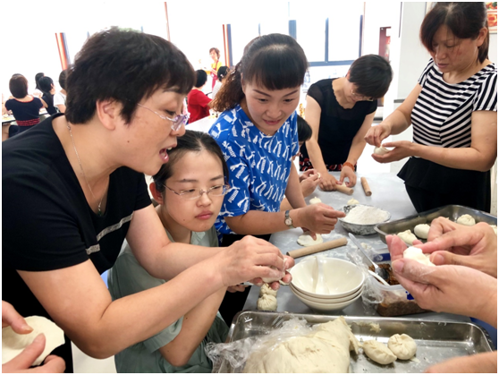 本次活动共持续了一个半小时,在两位面点老师的指导下,参加活动的女职工们现场体验了制作包子和蛋黄酥的过程。大家跃跃欲试,纷纷按照制作流程“大展身手”。现场气氛热烈,欢声笑语不断,处处流露着节日的喜悦。