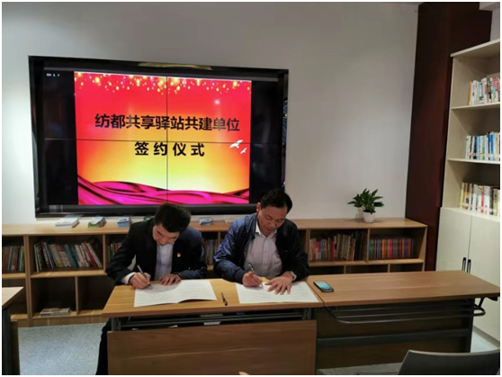 10月22日上午,全体党员首先来到纺都共享驿站,红建社区党委书记虞建妙向大家介绍了红建社区根据自身特色,打造纺都共享驿站的作用和目的,随后党支部书记李斌灿同志代表公司党支部与纺都共享驿站进行签约仪式。柯桥客运中心入驻纺都共享驿站后,将派选优秀人员走进社区开展法制宣传、客运服务、社区建设等公益服务,实现资源共享、优势互补,全面激活柯桥客运中心党建工作的活力。